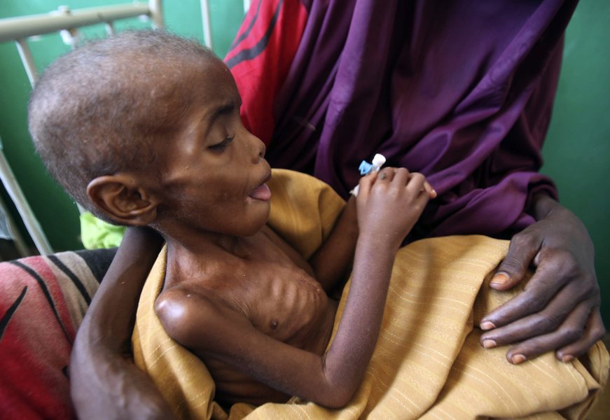A Somali woman sits with her malnourished child at Banadir hospital in capital Mogadishu, July 28, 2011. Aid groups, which have been clamoring for money to help famine-stricken Somalia, are struggling to reach millions in the affected areas. Some 3.7 million Somalis risk starvation in two regions of south Somalia controlled by Islamist al Shabaab militants. Yet more than 2 million of them have not received any help. REUTERS/Ismail Taxta (SOMALIA – Tags: SOCIETY CIVIL UNREST DISASTER HEALTH)