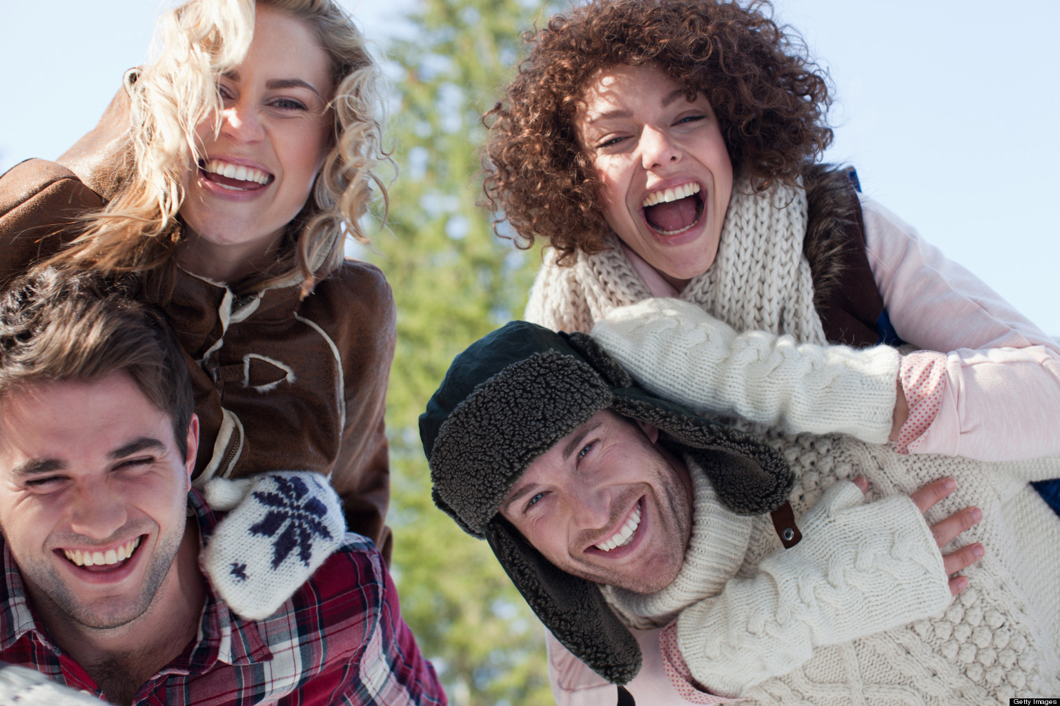 Portrait of smiling couples piggybacking